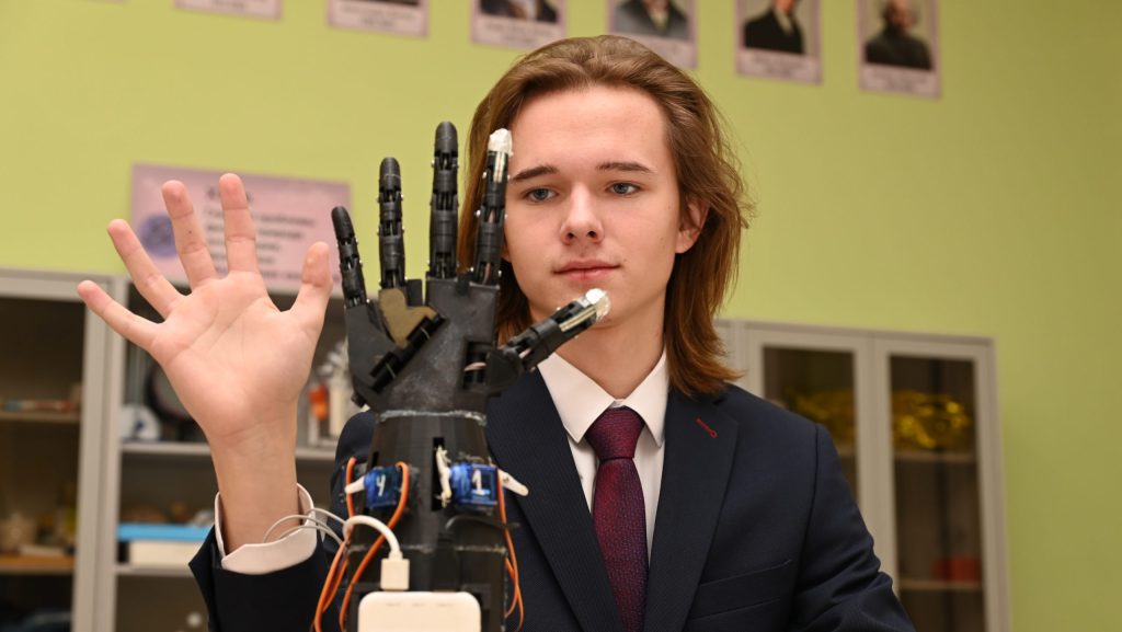 Ученик школы № 2044 Михаил Неешпапа создал в учебной лаборатории уникальный бионический протез и выложил его конструкцию в открытый доступ, сделав технологию доступной.