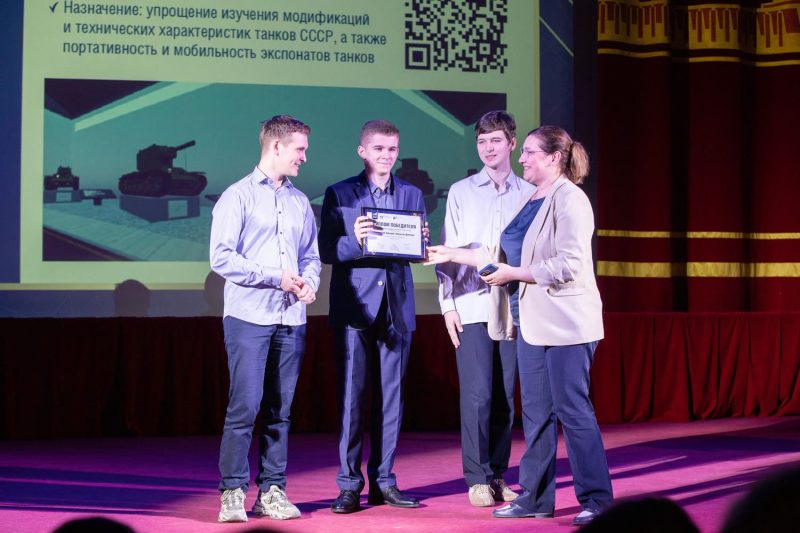 Команда десятиклассников из школы №1561, которая победила в номинации «Дополненная реальность», создала VR-приложение для изучения историографии крупнейших сражений Великой Отечественной войны. Приложение позволит проводить VR-экскурсии как в Музее Победы, так и на уроках в школах. А команда школы № 1302 — победители в номинации «Цифровой двойники» — разработали 3D модели экспонатов локации «Танковая» музея «Г.О.Р.А.».