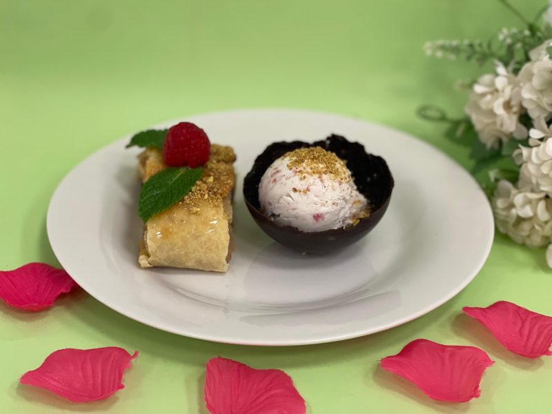 малиновое, декорировали его шоколадом и мятой, что беспроигрышно