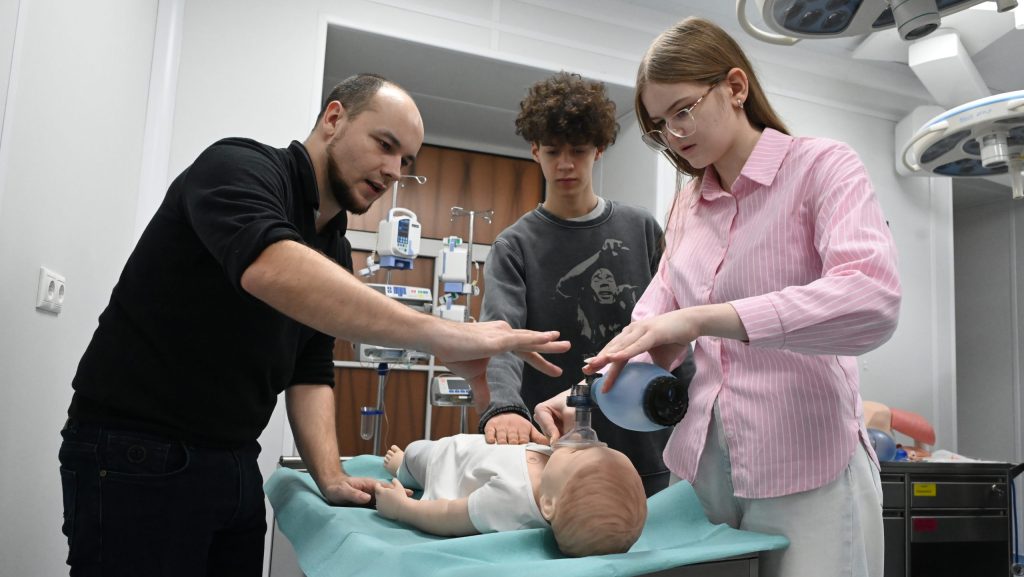 — Если попадете трубкой в пищевод, воздух будет поступать в желудок. Видите — вот, трубка введена, а легкие не дышат, сатурация падает, — объясняет он. — Но навык отлично отрабатывается, спасибо Семену.