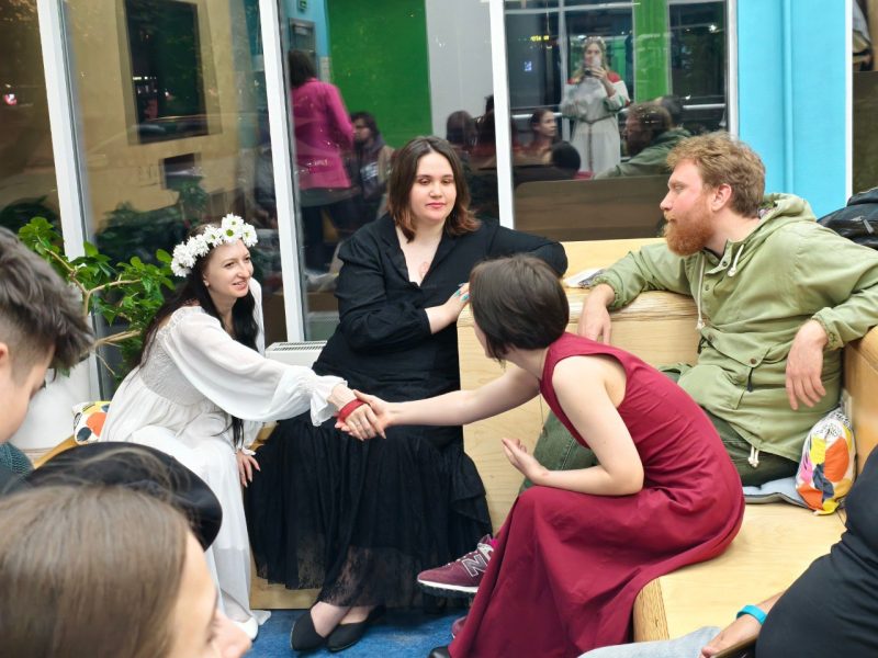 Стилизованный шабаш начался в холле – с фортепианного лайва, погружающего в дремоту и творчество Вертинского, от поэта, вокалиста и пианиста Сергея Гейченко, который исполнил задумчивые баллады и композиции с нотками юмора. Оттолкнувшись от поэзии и музыки, участники перешли в Зал визуальных искусств – к обсуждению романа «Магазин работает до наступления тьмы» с писательницей Дарьей Бобылёвой, которая в ходе встречи призналась, что обожает авторов Серебряного века и литературу русского зарубежья. «И эта книга дала мне возможность внедрить туда кучу отсылок, аллюзий, реминисценций любимых авторов и историй. И некоторые из них никто до сих пор никто не нашёл, пусть ищут, я не буду открывать все карты», – отметила автор романа о блогере Славике, сотруднике антикварного магазина, в котором происходят странные события.