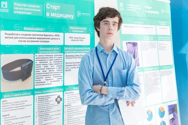 Так, Роман Покачев из медицинского класса школы № 1535 придумал, как быстро предоставить медикам информацию о здоровье человека в критической ситуации. Он разработал прототип браслета со встроенным чипом. В нем хранится ссылка на онлайн-анкету с данными о группе крови, аллергиях и хронических заболеваниях. Чтобы прочитать их, врачу достаточно поднести смартфон к браслету.