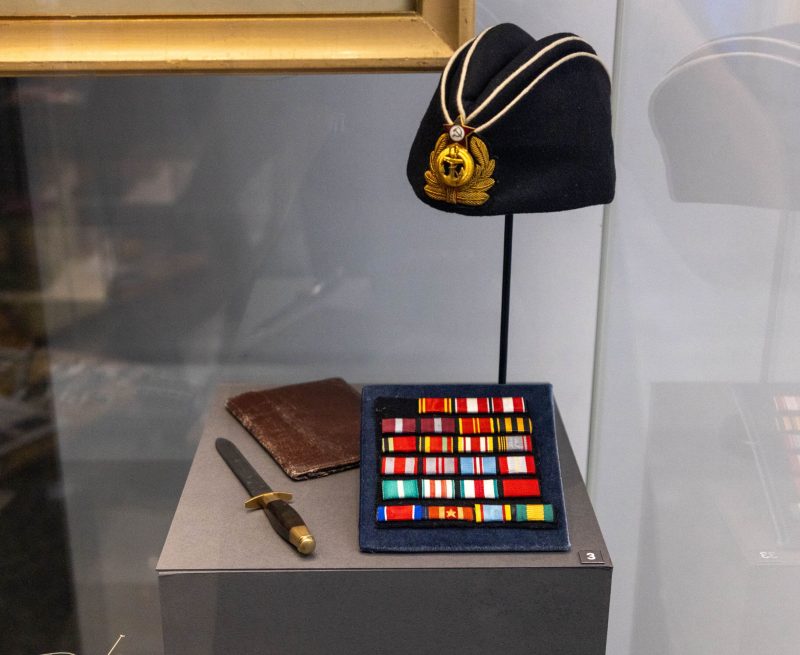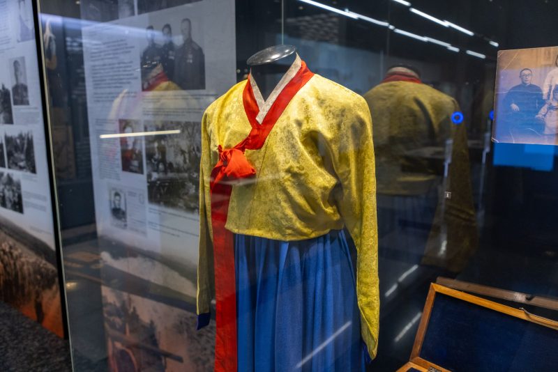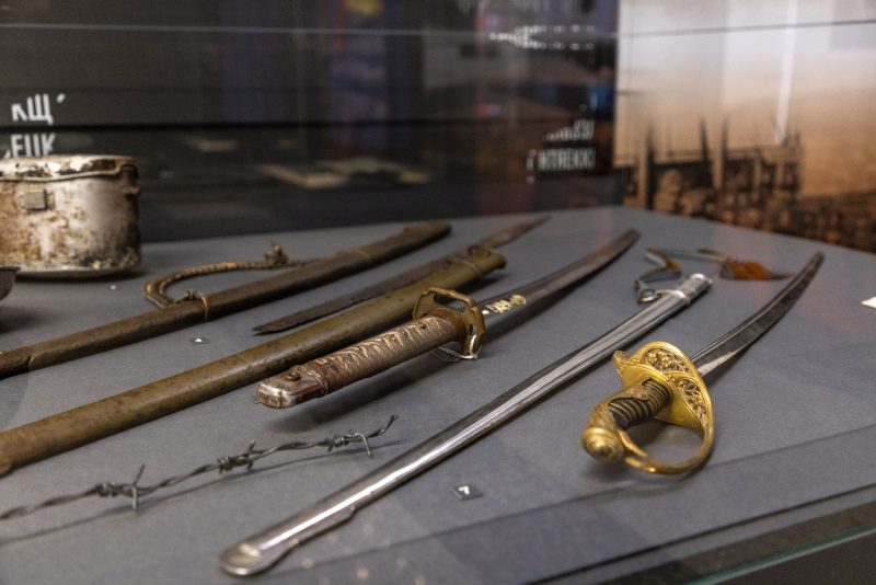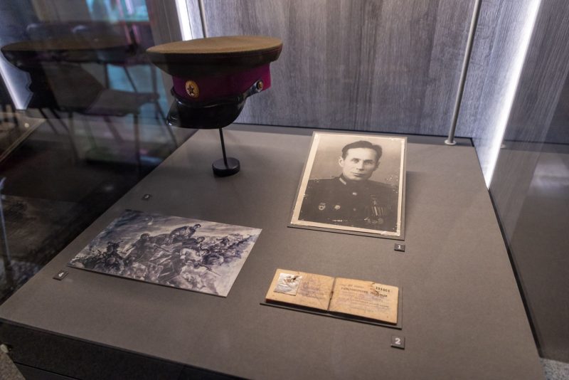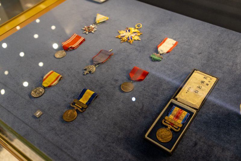 Кроме того, в витринах представлены оружие, форма, предметы быта и амуниции военнослужащих Квантунской армии, а также японские награды. Например, среди уникальных экспонатов – боевой нож айкути, которым японский камикадзе планировал убить Григория Меклера, советника первого лидера Северной Кореи Ким Ир Сена. После войны Григорий Меклер в течение года сопровождал будущего лидера КНДР, помогая ему завоевывать доверие соотечественников, а затем был назначен уполномоченным по делам репатриации японских военнопленных и работал заместителем начальника лагеря. Один из японцев пронес в лагерь нож, чтобы убить Григория Коновича, однако понаблюдав за работой, которую проводил Меклер, изменил свое намерение и подарил боевое оружие своему бывшему врагу в знак уважения и мирных намерений. Еще один интересный предмет — японская керамическая граната Тип-4 1945 года. К их изготовлению по всей стране привлекли фабрики, в мирное время производившие дорогую традиционную японскую керамику.