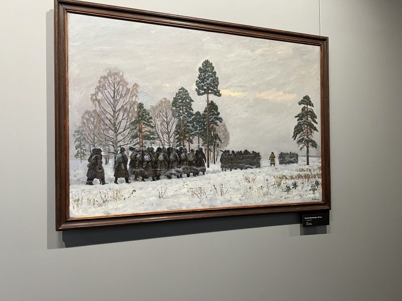 «Перед нами — синтез реалистической традиции и индивидуально переосмысленных приемов импрессионизма. Контрастная работа с цветом делает фигуры изображенных солдат живыми и пластичными», — подчеркнули в Музее Победы.