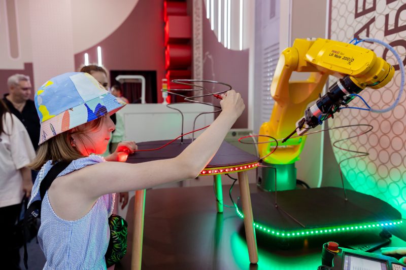 Гости также могут посоревноваться с промышленным роботом — кто быстрее проведет кольцо по лабиринту. На мастер-классе по нейротехнологиям посетители узнают, как управлять бионической рукой силой мысли, и составят план действий для реализации своей мечты. Здесь же благодаря ИИ-алгоритму гости смогут подобрать по скану лица подходящую профессию.